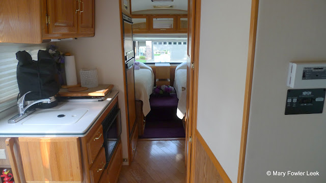You need to wear sunglasses when looking directly at the carpet, but, hey, the price was right. The engine only has 24,000 miles on it, new michelin tires all around, the generator has 82 hours, etc. It's been nicely cared for. Bud Brown, the owner of the RV business, has owned and driven it this last year. He originally sold it new to a couple, then when one of the owners passed, it was sold to a gentleman who needed the use of this type of coach for a year. He did a lot of updates and when he was ready to sell, Bud bought it for his personal use. We couldn't be happier with this old Telstar, a coach we admired when it was in its heyday. As so many of the better small coach manufacturers are finding out, they just become too costly to produce and eventually the better manufacturers are closing shop. That's what happened with this company and, more recently, with the Chinook Motor Coach company. So sad, as there will always be a need for the smaller, well made coaches.